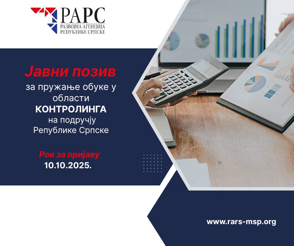 1. 10. 2025.Развојна агенција Републике Српске продужила је рок за пријаву на Јавни позив за пружање обуке у области контролинга на подручју Републике Српске. Контролинг је водећа њемачкa методологија управљања предузећем којом се прикупљају пословне информације неопходне… >>>